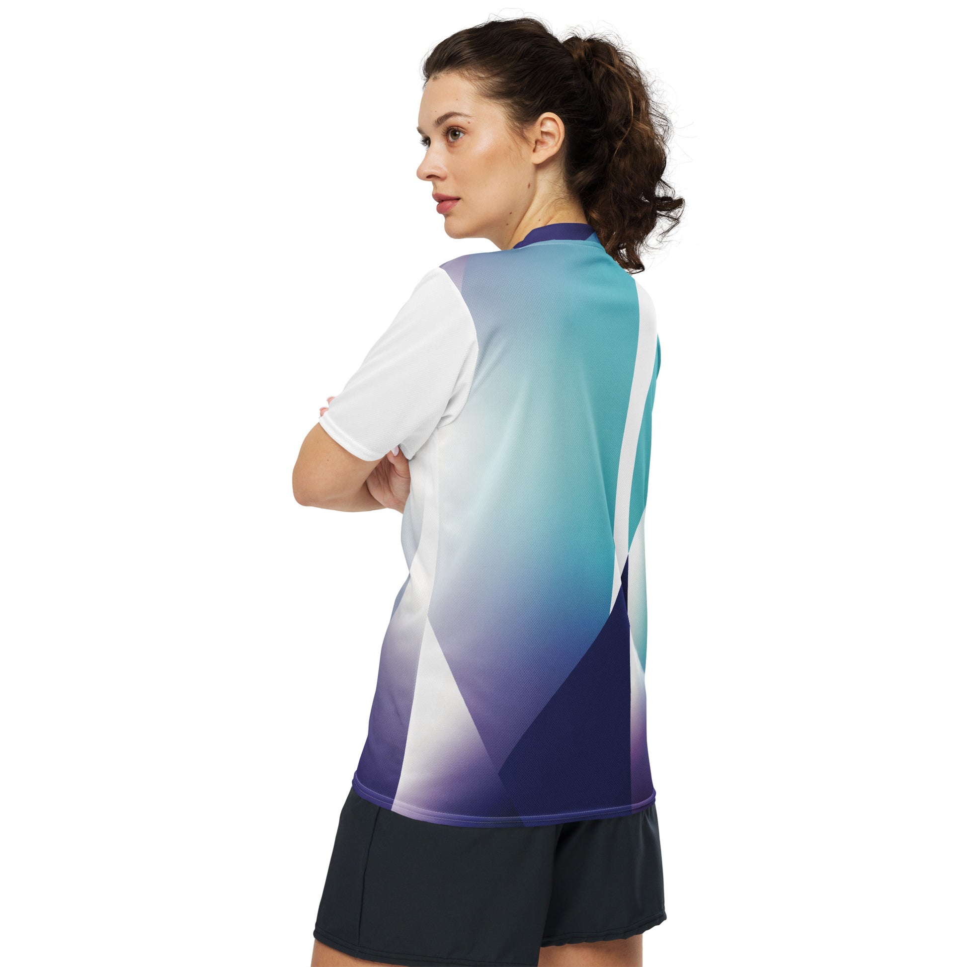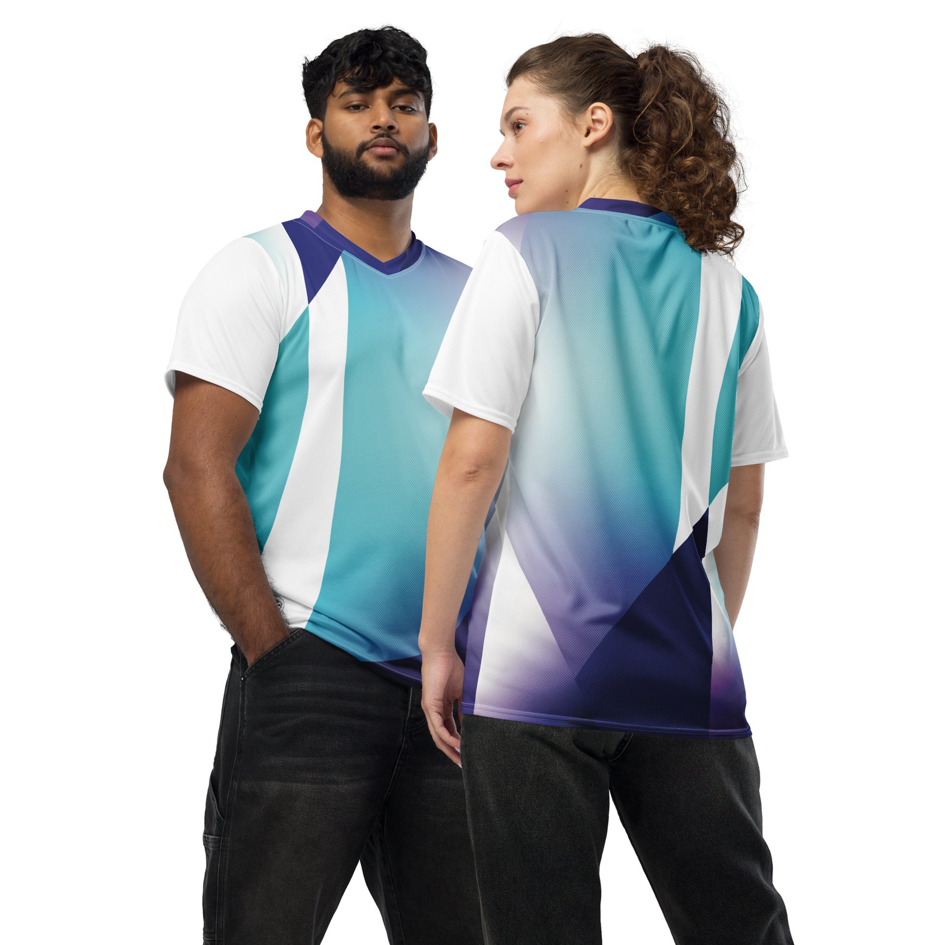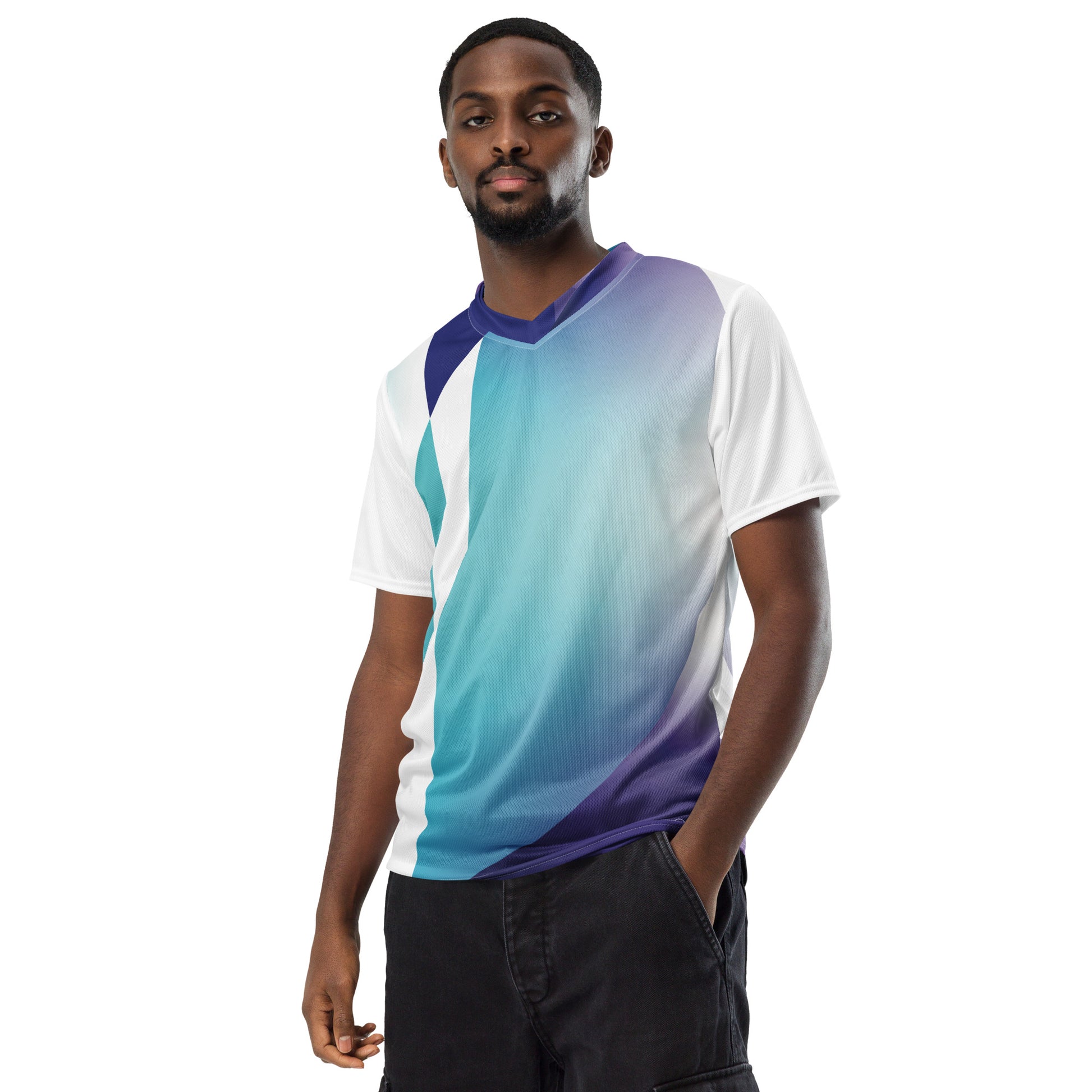Made from 100% recycled polyester fabric, this tee is breathable and moisture-wicking, and features a double-layered V-neck that creates the perfect premium look. Design & style are there for this exclusive collection.